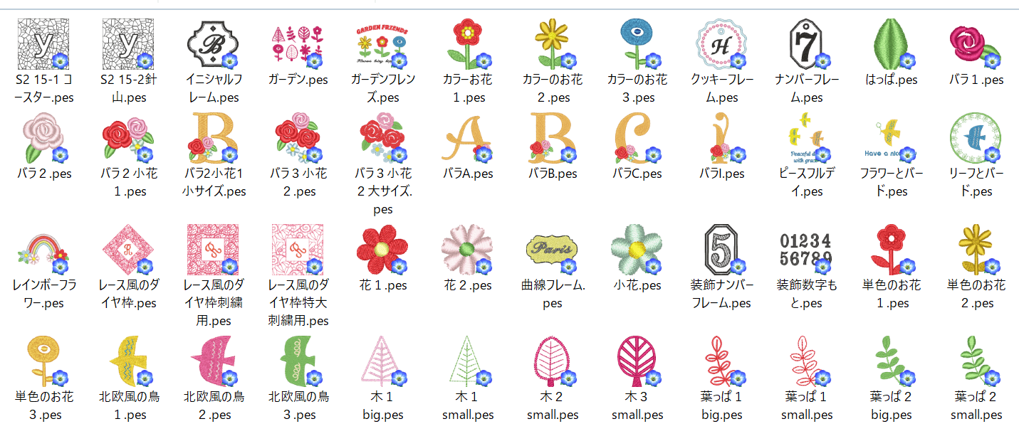 ワークで講師が仕上げた、モチーフ刺繍データ