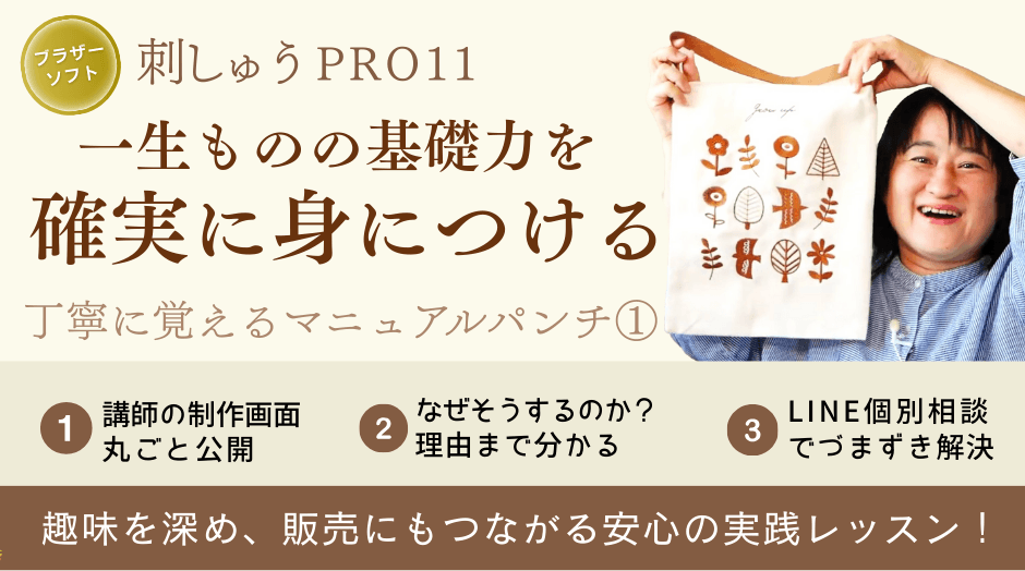 対応するソフト: 本講座はブラザー「刺しゅうプロ11」に特化した内容です。他のソフトはサポート対象外となります。