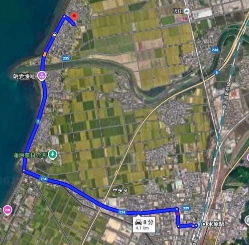 最寄りの坂田駅から工房までは徒歩約20分です。